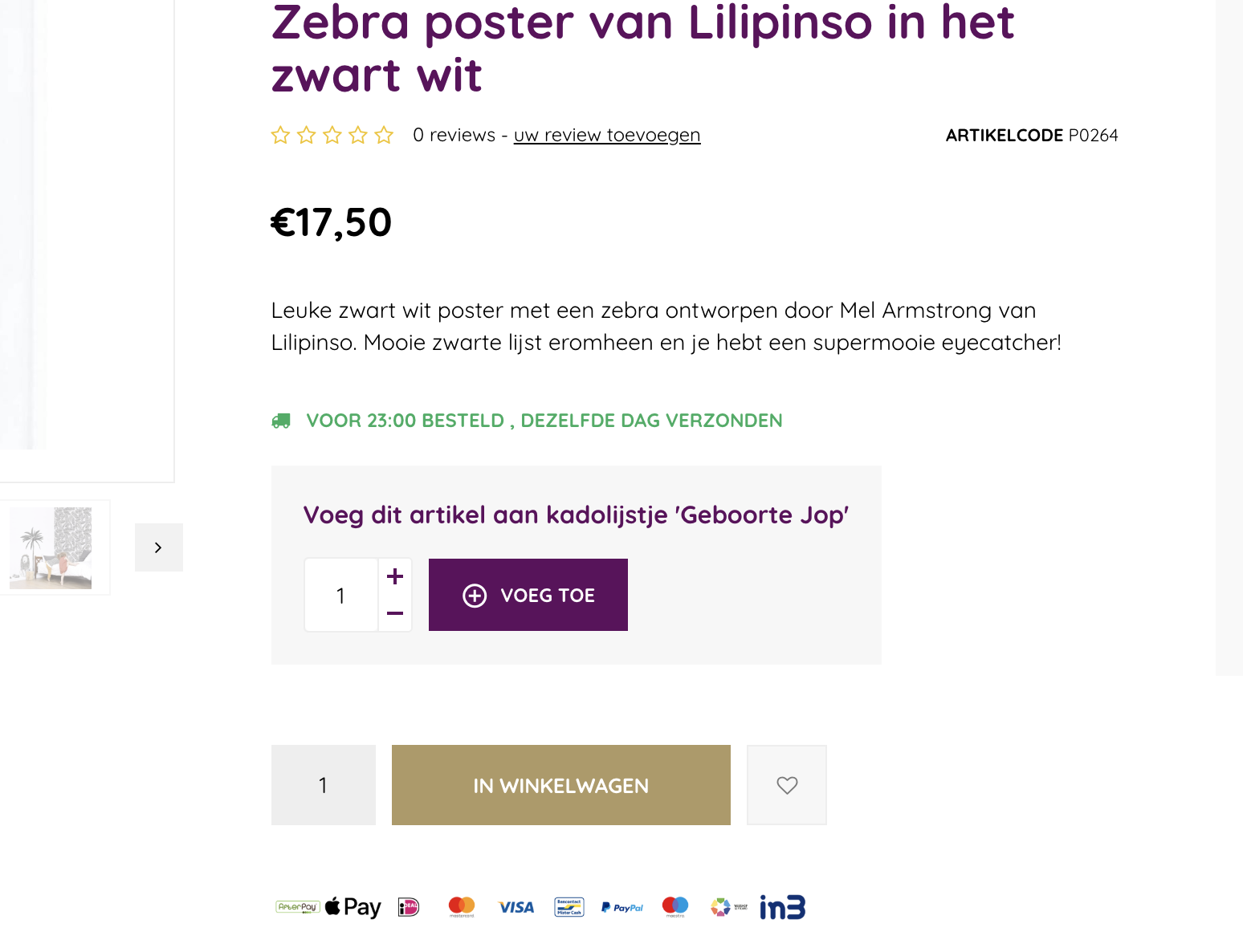 - Voeg dit artikel toe aan jouw lijstje, dit doe je door op de paarse knop te klikken.