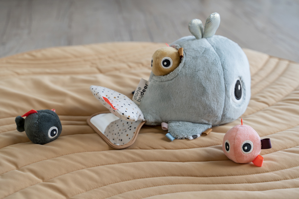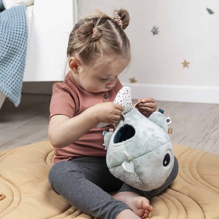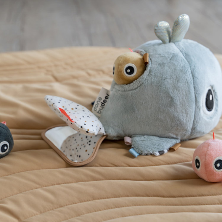 De Activity Floor Mirror is voorzien van verrassende elementen, zoals verschillende texturen, een kreukel- en rammelgeluid. Kortom genoeg activiteiten om te ontdekken! Ontdek waar het kleine walvisje zich heeft verstopt ;-)