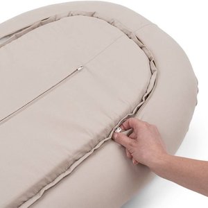 Het babynestje heeft een buitenkant van 100% organisch katoen, wat het nestje duurzaam maakt. Bovendien kan de buitenkant van het nestje gemakkelijk worden gewassen op 40ºC. Vergeet niet om het foam matrasgedeelte uit het nestje te halen voordat je het wast.