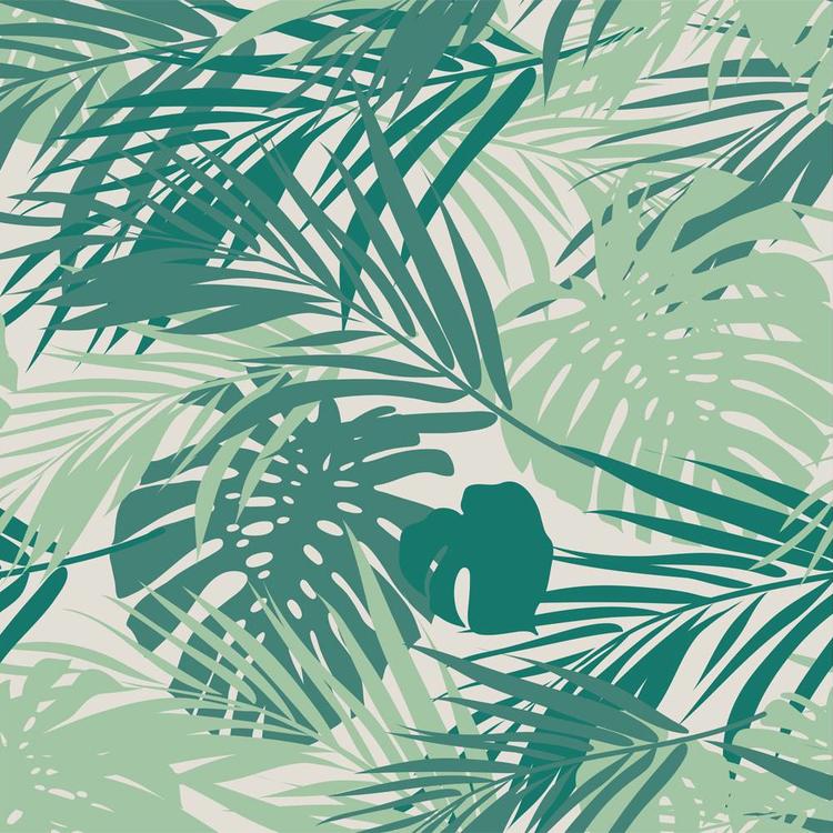Het vliesbehang van monstera en palmbladeren is vele malen sterker dan gewoon (papier) behang.