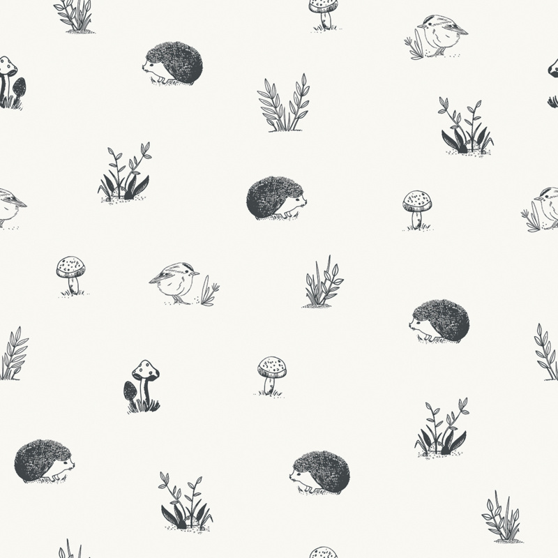 Het mooie bosdierenbehang is van lilipinso en geeft de babykamer met zijn kleine egeltjes en musjes een schattige uitstraling.