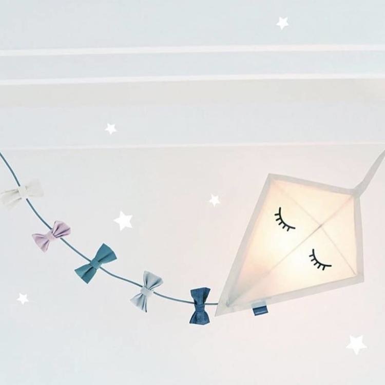 Een absolute persoonlijke favoriet is de prachtige wandlamp van roommate in de vorm van een vlieger/ waaier. Hij komt met 5 strikjes die je zelf kan bevestigen en combineren.
