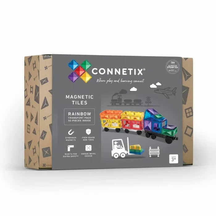 Het 50-delige Rainbow Transport Pack van Connetix Tiles brengt urenlang grenzeloze creativiteit, plezier en ongestructureerd spel tot leven.