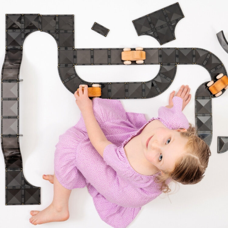 Dankzij het ontbreken van vaste wegmarkeringen of witte lijnen kunnen kinderen hun eigen wegen, ontwerpen en verhalen bedenken. Deze open-ended speelstijl moedigt kinderen aan om hun creativiteit en probleemoplossende vaardigheden te ontwikkelen, terwijl ze plezier hebben met het bouwen van unieke structuren.