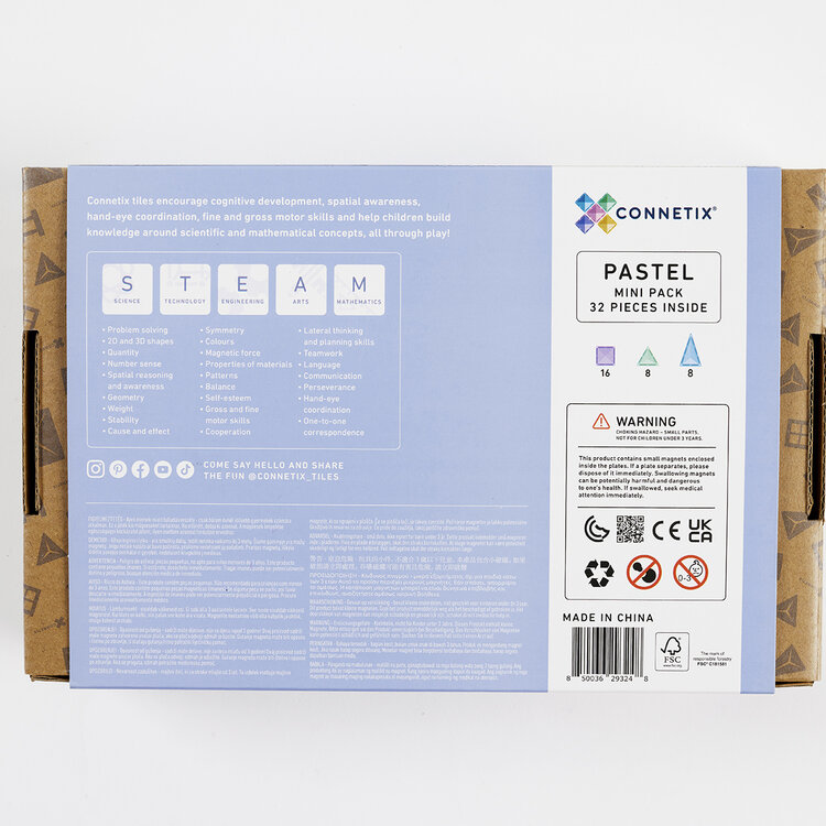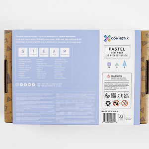 Alle magnetische tegels zijn gemaakt van niet-giftig ABS-plastic dat BPA- en ftalaatvrij is, verzegeld en geklonken voor extra veiligheid. Het unieke afgeschuinde ontwerp zorgt ervoor dat Connetix sterk is en tegelijkertijd prachtige heldere kleuren heeft.