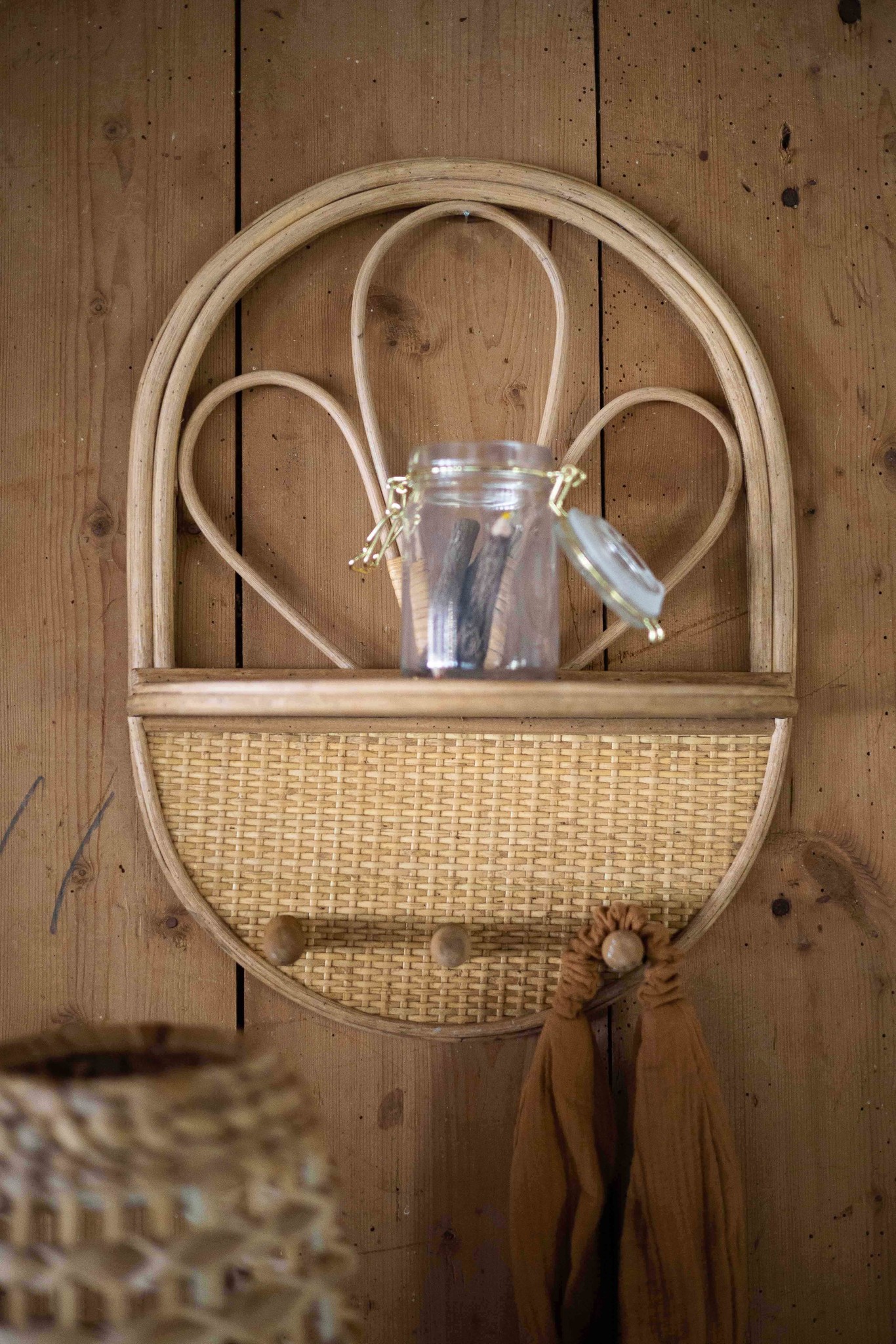 Prachtige wandrek van bamboe, die aan elke muur een mooi plekje verdient. Helemaal hip & trendy! Leuk om kleine spulletjes aan te hangen.