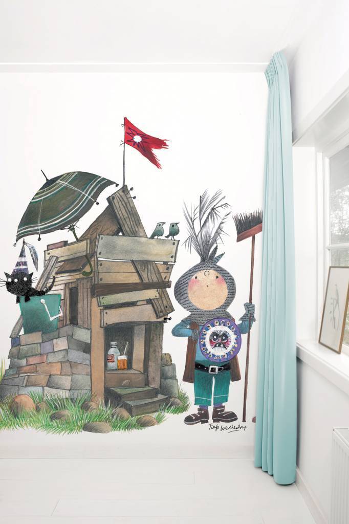 Fotobehang ridder 243.5 x 280 cm is getekend door Fiep Westendorp en is kinderbehang voor een vrolijke en superleuke kinderkamer. Het behang van KEK Amsterdam is erg sterk, milieuvriendelijk en zeer eenvoudig aan te brengen.