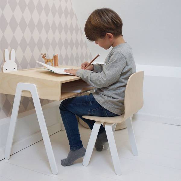Dit geweldige kinderbureau van In2Wood is gemaakt van een prachtig mooi berken triplex hout, de poten zijn gemaakt van gelakt aluminium. Het bureau is in twee maten verkrijgbaar, voor kinderen van 2-6 jaar oud en kinderen van 6-10 jaar oud.