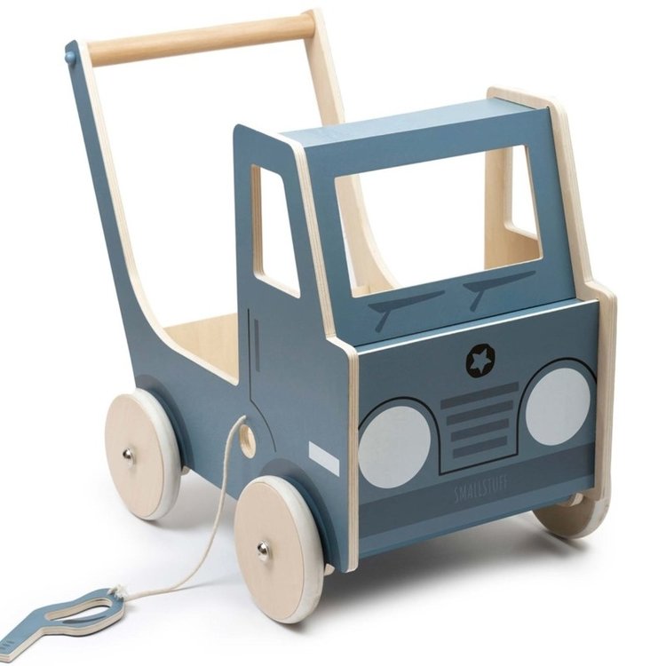 De eerste stapjes zet je kindje met de Smallstuff Houten Loopwagen. Deze truck helpt je kindje met het leren lopen en daarnaast gaat hij gaat gezellig mee op avontuur. Je kleintje kan hem volstoppen met zijn of haar favoriete speelgoed en vervolgens lekker rondwandelen. Daarnaast is de truck voorzien van een benzineslang, zodat je kindje hem kan bijvullen zodra de tank leeg is. De bodem van de loopwagen is voorzien van metaal, waardoor hij extra zwaar en stabiel is en dus perfect voor de eerste stapjes.