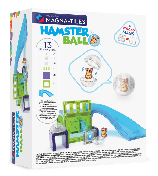 Beleef rollend speelplezier met de MAGNA-TILES® Hamster Ball Set (13-delig). Deze speelse magnetische bouwset brengt beweging, creativiteit en fantasie samen. Plaats het schattige hamstertje in zijn magnetische bal en kijk hoe hij vrolijk door bochten, hellingen en bouwwerken rolt die kinderen zelf ontwerpen.