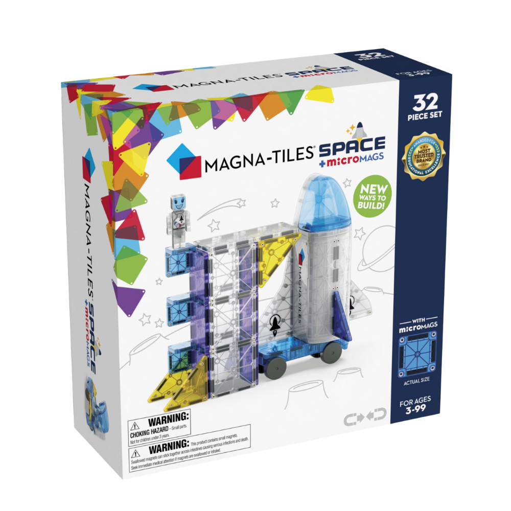 Met de MAGNA-TILES Space Set lanceren kinderen hun fantasie naar nieuwe hoogten. Deze 25-delige set bevat transparante tegels met ruimteprints én vier gedetailleerde figuren, waaronder een astronaut, rover en raket. Perfect voor jonge ontdekkingsreizigers die dol zijn op sterren, planeten en buitenaards bouwen.