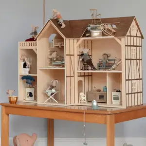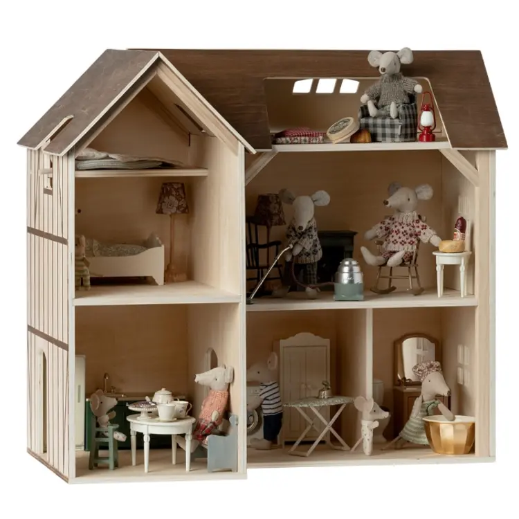 Kinderen kunnen met dit boerderijhuis hun eigen magische wereld creëren, elke hoek inrichten met hun favoriete meubels en accessoires, en zo een knus thuis bieden aan hun muizenfamilie. Elk detail van dit prachtige houten huis, van de elegante gevel tot de schattige raampjes, is zorgvuldig ontworpen om de verbeelding van kinderen te prikkelen.