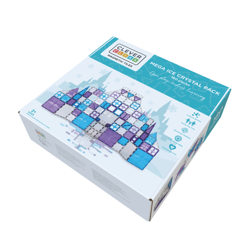 Betreed de betoverende wereld van creativiteit met de Cleverclixx Mega Ice Crystal Pack. Deze magische set laat je sprankelende ice creaties maken die de verbeelding van jong en oud prikkelen. Met maar liefst 180 magnetische tegels, is deze set ontworpen om eindeloze uren plezier te beleven. De sterke magnetische tegels van Cleverclixx zorgen ervoor dat de stukjes moeiteloos aan elkaar klikken, waardoor je ontwerpen stevig en stabiel blijven, of je nu in 2D of 3D bouwt. De mix van wit, blauw en paars gekleurde tegels zorgt voor een magisch effect in al je creaties.
