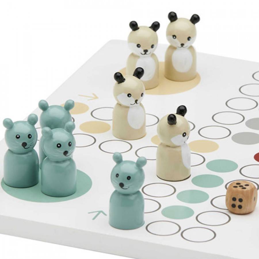 Superleuk houten mens-erger-je niet spel van Kids Concept. In mooie zachte pastel kleuren passende bij de Edvin collectie van Kids Concept. De diertjes hebben allemaal een eigen kleurtje.
