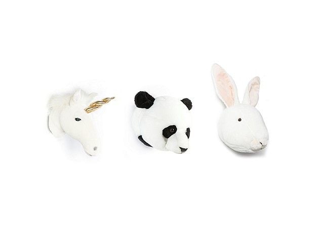 Superleuke pluche set van 3 dierenhoofden van Wild and Soft voor in de leukste kamers. De leuke eenhoorn, panda en konijn zijn ongeveer 18 cm groot. Zo creëer je je eigen droomkamer!! Met een handig ophanglusje kun je de dierenkop zeer makkelijk aan de wand bevestigen.
