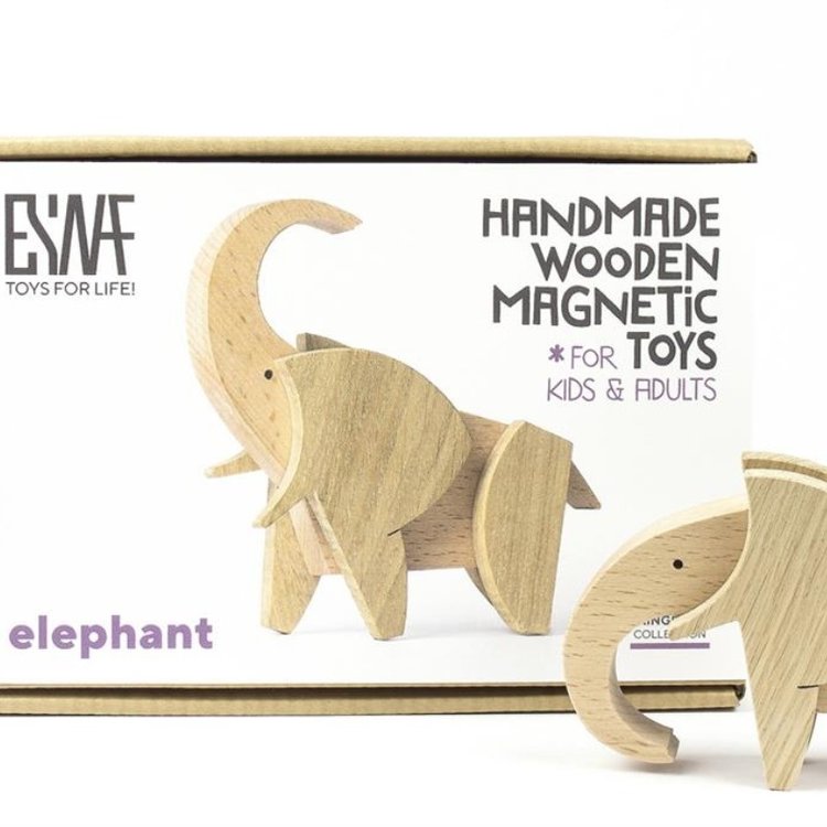 De olifant is onderdeel van Animal Kingdom set van volledig handgemaakte houten magnetisch speelgoed voor kinderen en volwassenen.