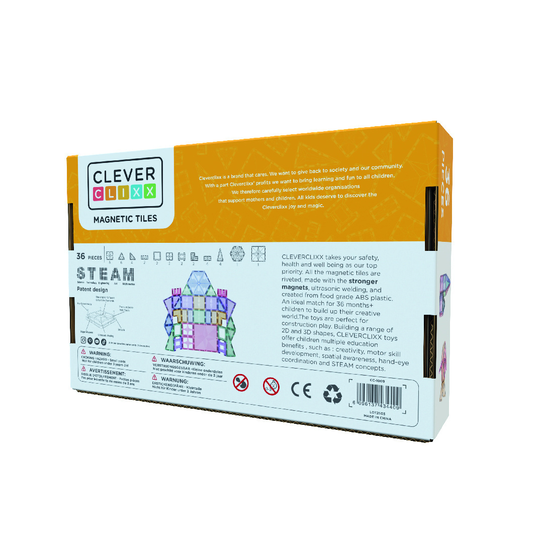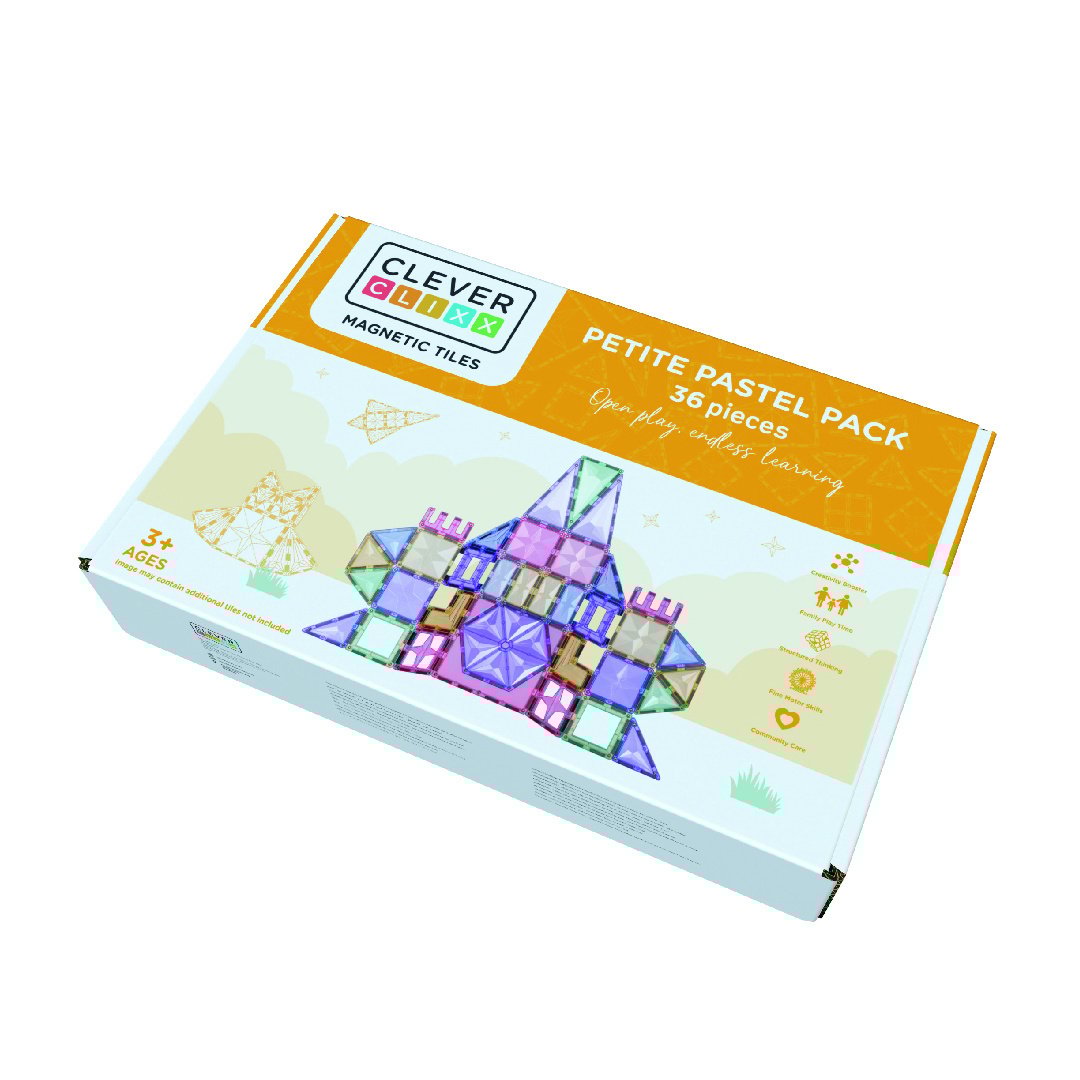 Eindeloos grenzeloos bouwplezier met dit 36-delige Petite Pastel Pack van Cleverclixx. Met deze leuke pastel set gaat je kindje aan de slag en leert hij of zij verschillende vormen in verschillende kleuren kennen. Het is een perfecte set om mee te starten en de sets te leren kennen. Later breid je eenvoudig uit met de uitbreidingssets van Cleverclixx!