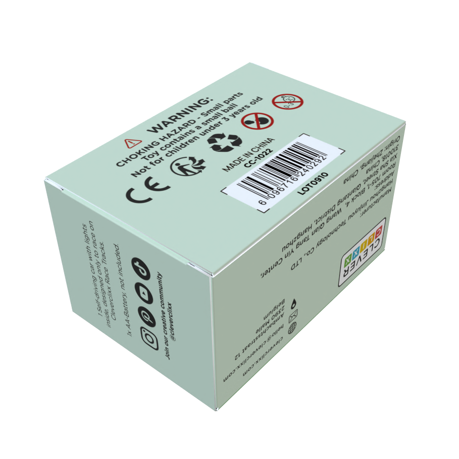 Hij past perfect op het Cleverlixx Race Track spoor en rijdt perfect zoals jij het wil. Vooraan gaan er ook lampjes branden wanneer je auto rijdt. Deze auto kan niet gebruikt worden om op andere race tracks te rijden.