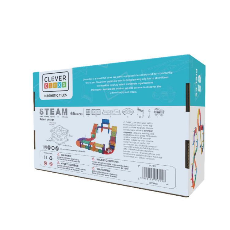Eindeloos grenzeloos raceplezier met dit 65-delige Race Track Pack van Cleverclixx. Met deze leuke Intense set gaat je kindje aan de slag om de coolste racebanen te bouwen op verschillende niveaus. Er worden verkeersborden, een autootje en pilaren meegeleverd voor extra veel plezier.