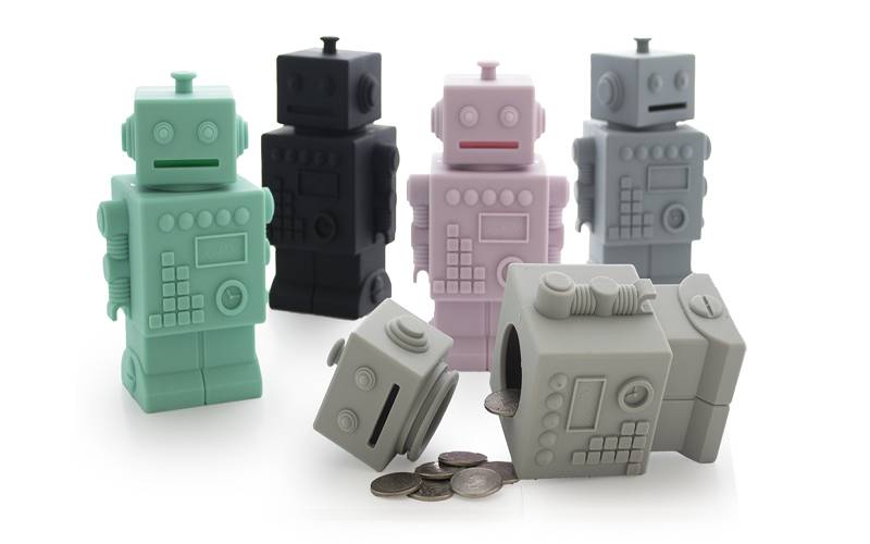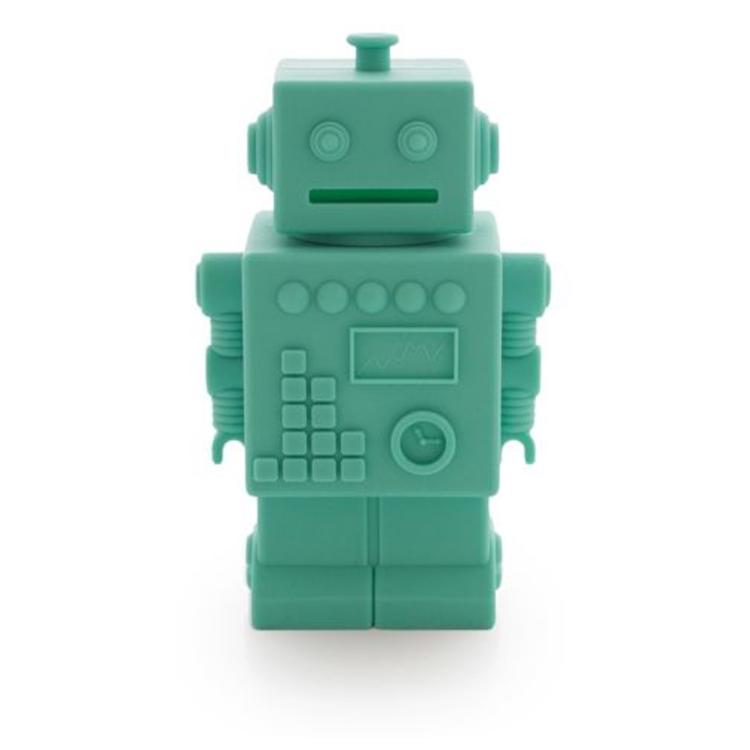 Te gekke spaarpot in de vorm van een robot in de kleur lime, van het merk KgDesign