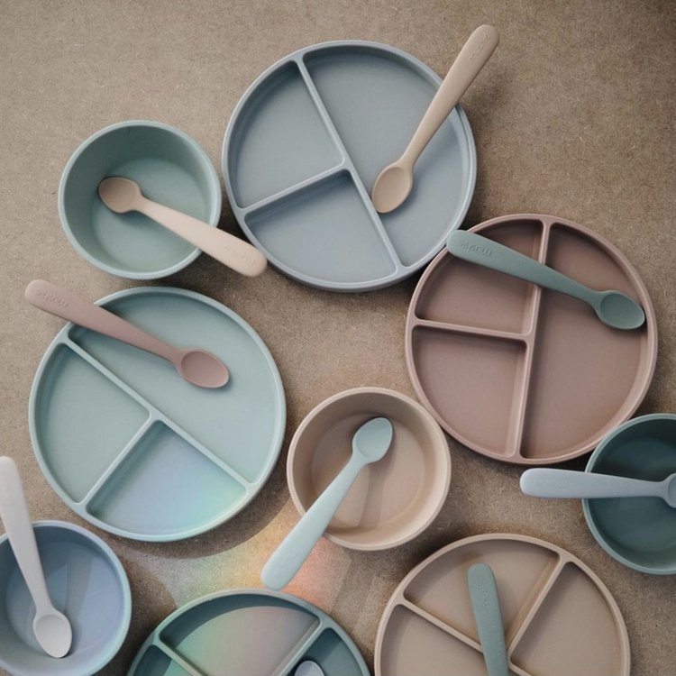 Prachtig de nieuwe, siliconen bord met vakjes van Mushie. Mooie kleuren en ze kunnen echt tegen een stootje.