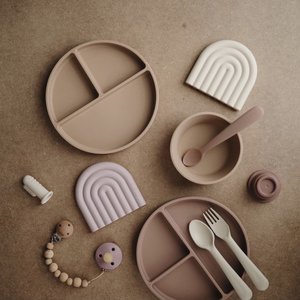 Supermooi de nieuwe, siliconen kom van Mushie. Mooie kleuren en ze kunnen echt tegen een stootje.