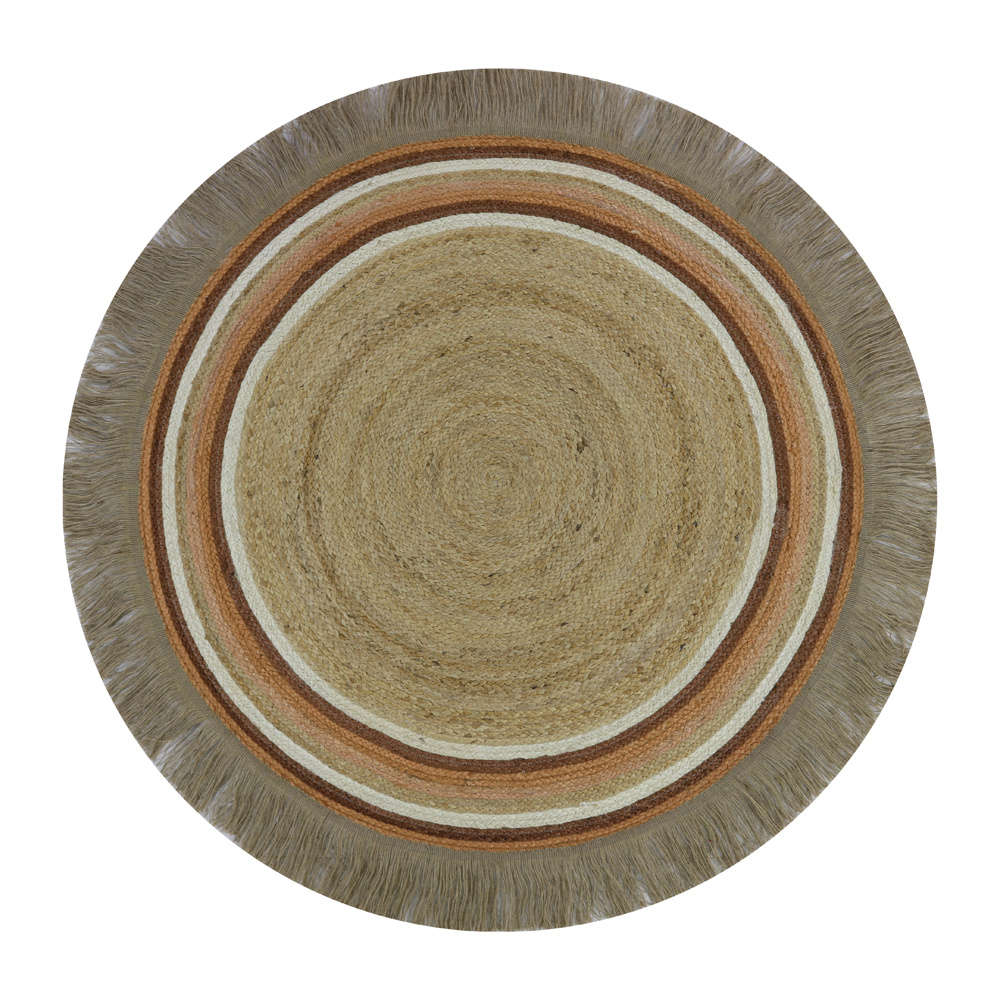 Supermooi rond vloerkleed van jute in de kleur bruin, oranje, creme van Tapis Petit.