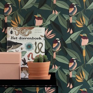 Supertof groen behang met vogels van Studio Ditte.