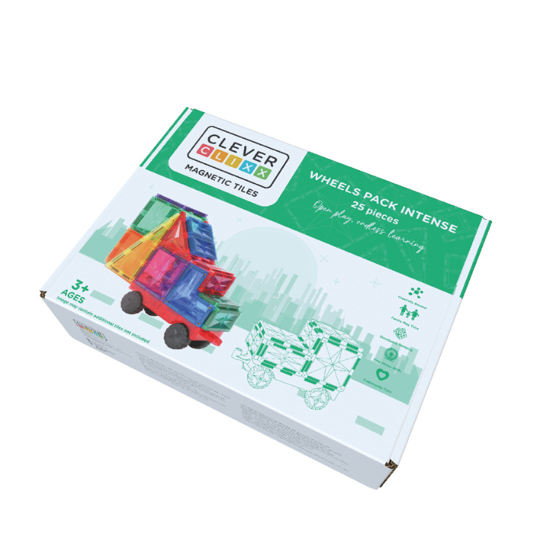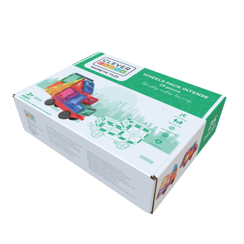 Eindeloos grenzeloos raceplezier met dit 25-delige Wheels Pack van Cleverclixx. Met deze leuke Intense set gaat je kindje aan de slag en leert hij of zij verschillende vormen in verschillende kleuren kennen. Het is een leuke set om een superleuke auto te bouwen.