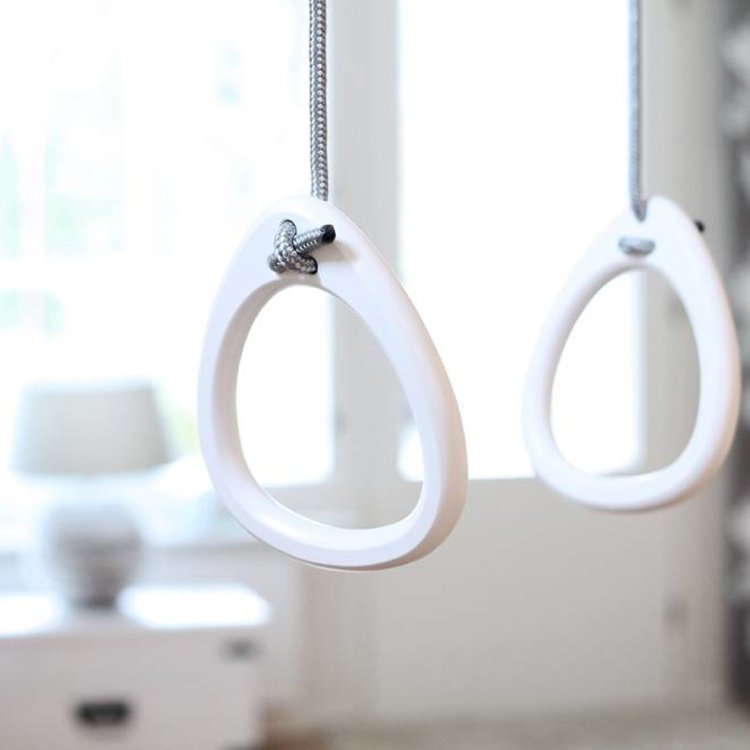 De turn ringen zijn een echte eye-catcher voor in de kinderkamer en zelfs voor in de woonkamer. De Lillaguanga Rings zijn van wit geverfd beukenhout en daarom zijn deze ringen alleen geschikt voor binnen. De eikenhouten ringen kunnen wel buiten gebruikt worden.